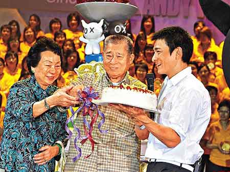 华仔在活动尾声时捧生日蛋糕,与刘妈妈及2000名歌迷一起为刘爸爸庆祝生日。