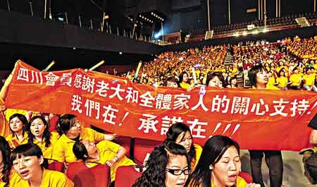 来自四川的歌迷举起横额,感谢华仔一直支持四川灾民。