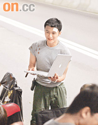 为免电脑中的私密照外泄,谢霆锋拍片时将计算机交予助手保管,并禁止记者拍照。图片均来自香港《太阳报》。