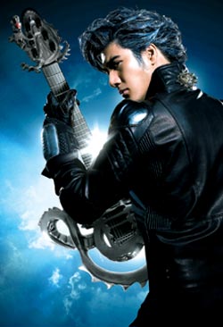 中新网7月18日电 最近,王力宏为9月份演唱会进棚拍摄宣传海报,将自己改造为“MUSIC MAN”音乐超人。据台湾《中国时报》报道,王力宏穿上漆黑的皮衣搭配银色护甲,再将头发挑染成金属色泽的蓝发色,手拿“音符龙”图腾的电吉他,充满漫画元素及未来科技感,气势十足。