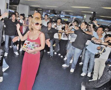 中新网7月25日电 日本巨星滨崎步本周二(22日)到澳门拍摄2008年月历,匆匆逗留28小时之后,前日晚上7时许返港。换上橙红色吊带裙,戴上太阳眼镜的滨崎步,获30余名粉色送机,场面火爆。