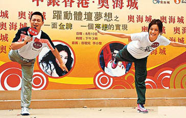中新网8月11日电 容祖儿昨日与奥运个人全能体操金牌得主李小双担任奥运活动嘉宾,李小双当场示范倒立,获观众热烈掌声,他又教容祖儿做体操动作。李小双指中国很大机会拿体操团体金牌,他估计中国会夺得30至36面金牌,体操占4至5面。