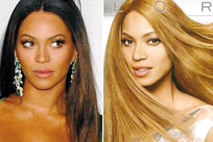 现年26岁的碧昂丝一身古铜滑溜肌肤,曾被誉为性感象征,碧昂丝的父亲是美籍非裔,母亲则是法国混血,因此肤色虽不算太黑,却也是健康的巧克力色。但她最近为欧莱雅染发剂担任代言人,变化的不仅是她的发色,媒体发现原本有黑人血统的她,肤色疑遭美术人员以电脑“漂白”,看上去几乎已快要像个白人。