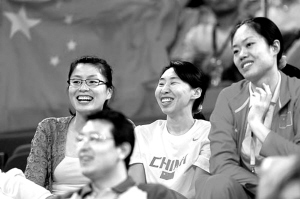 叶莉和前队友苗立杰坐在一起,戴着眼镜的叶莉一直在默默为姚明加油。不过当中国男篮最终大比分输掉比赛后,叶莉的神色也有些黯然……
