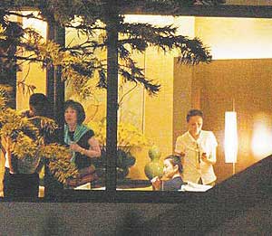 中新网8月26日电 “梁太太”刘嘉玲婚后没有改变社交生活的习惯,动不动就请友人到家饮酒餐叙,前晚北京奥运在鸟巢的闭幕式,她又找来3男3女好友到山顶的寓所欢聚,梁朝伟(伟仔)虽然不好应酬,但他仍然极力扮演男主人的角色,当友人对他家花瓶感到兴趣时,他立刻充当艺术品指导仔细讲解。