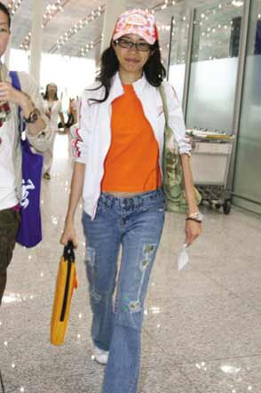 当天出现在机场的莫文蔚打扮得也算低调,但其实是很讲究的:橙色T恤搭配白色运动外套,再加上橙色的电脑包、橙色的货车帽、磨旧的牛仔裤,以及她一脸灿烂如阳光的笑容,既亲和又轻便,是各路粉丝出游、访友以及外出运动的首选造型。