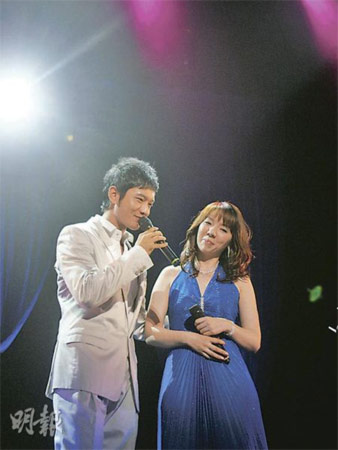 黄晓明与冈本真夜合唱《新上海滩》片尾曲《就算没有明天》。来源:香港《明报》