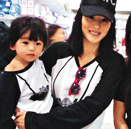 张柏芝与爱子黑白母子装亮相,Lucas面貌清秀酷似妈妈。