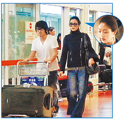 曹格(左)与吴速玲今年2月被拍到现身桃园机场。《壹周刊》