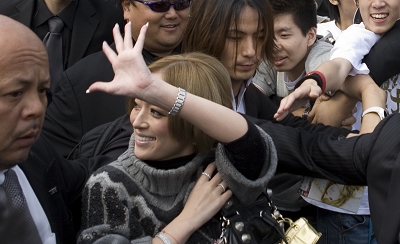 滨崎步在虹桥机场被热情的歌迷簇拥 早报见习记者王浩然图