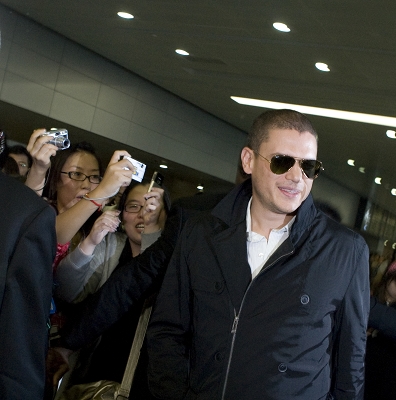 拥有8国血统的温特沃斯·米勒,因主演美剧《越狱》一炮而红,更被影迷们亲切地称为“米帅”。昨天傍晚,他乘坐美联航UA857航班抵达上海,为今明两天在上海举行的ME&CITY上市发布会宣传造势。米帅首次上海之行,选择了“亲民”路线,在机场走普通通道,还对粉丝很贴心,更是为粉丝当拍照“背景板”。