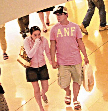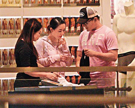前晚陈思慧与Larry先在美食广场兜了一圈挑选美食。饱肚后二人十指紧扣离开美食广场逛商场店铺,不过因当时不少店铺已关门,二人仅能做橱窗观光,其后见CalvinKlein内衣裤专门店还未关门,他们便第一时间走进店内左挑右选。