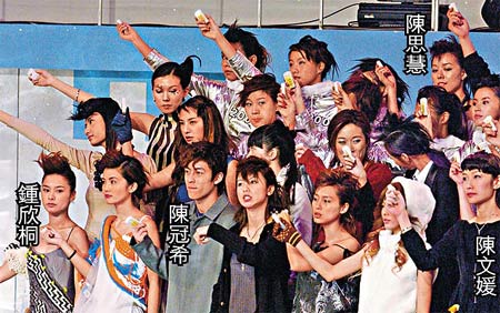 02年陈思慧与陈冠希、钟欣桐及陈文媛一起出席无线音乐节目宣传活动。