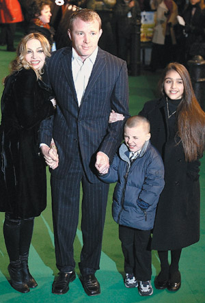 麦当娜(左)与盖·瑞奇(左二)闹离婚,女儿萝德丝(右)希望双方好聚好散。