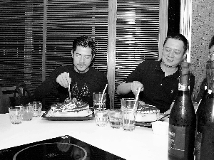 当晚,除了庆祝郭富城的生日,还预祝同是天蝎座的美术大师张叔平的生日,并趁机慰劳演唱会的一群幕后功臣,庆祝演唱会成功获吉尼斯大奖。工作人员还安排了紫红色葡萄酒香槟为郭富城庆祝,喻意希望大家在工作上都大红大紫、事事顺利。而当天的两则消息则印证了事业顺利:除了《舞林正传》DVD热卖外,台北两场小巨蛋演唱会的售票也十分成功,半天就卖了五成,而中午更令订票网络大塞车,使主办者邱瓈宽笑逐颜开。郭富城表示,台湾演唱会反应良好是很好的生日礼物。而郭富城的经理人小美和同事们今年送礼玩新意思,将预算买礼物给城城的钱,以他的名义捐了去老人院。(记者 叶毅)