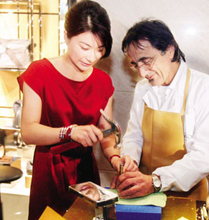 昨天,“跳水皇后”郭晶晶在武汉为意大利某品牌鞋担任嘉宾,身穿丝绸红裙的她受到民众热捧。郭晶晶还现场向设计师学习如何钉鞋。○茅中元