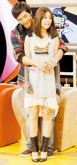 姚元浩(后)与林心如被怂恿相拥,让两人尴尬不已。