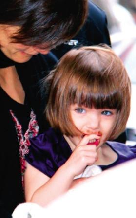 美国纽约当地时间11月24日下午,凯蒂·霍尔姆斯带着她和阿汤哥的宝贝女儿苏瑞在街边漫步,苏瑞吃一个杯状点心时,满脸沾着巧克力,十分可爱。