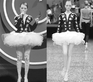 明星穿“山寨礼服”轻则被网友嘲笑,重则被品牌列入黑名单。容祖儿参加香港某颁奖典礼时穿的“烧鹅湖”装被发现是仿制维果罗夫(Viktor&Rolf)后,香港代理该品牌的名店明确表示之后会对容祖儿来借衣服有所保留。