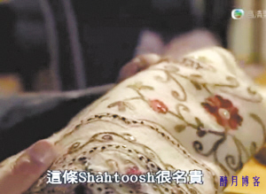 TVB台庆巨制《珠光宝气》正在如火如荼热播中,不过近日有细心观众发现,剧中使用了一种名为“沙图什(Shahtoosh)”的披肩,让不少正义观众相当反感。记者通过观看该剧发现,引起争议的剧情发生在第24集:贺家父子为讨“康雅思”(蔡少芬饰)的喜欢,争先恐后送沙图什披肩以示爱意,并再三强调“很难得”、“很名贵”。贺哲男甚至说,自己这条比起父亲的有过之而无不及,绝对更昂贵和奢华,而蔡少芬更是对这种披肩爱不释手。