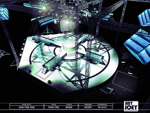 据悉,整个舞台形似华丽复古的八音盒,东、西、南、北、中5部超炫升降台的设置,让舞台变得八面玲珑,使在馆内每个区域,楼上、楼下的观众全部包裹在音乐、灯光之中;而高出舞台表面的繁复台阶、层叠式旋转升降蛋糕台等都纵向拉大了舞台的视觉空间。一条巨型的“一字彩幕天桥”将沿对角线呈一字形横跨舞台,并镶满LED彩幕,该设施将在特定表演环节使用,蔡依林将在这座彩幕天桥上表演。此外,蔡依林无论走到舞台的哪一面,观众都可以通过舞台上空互相连接的四块超大屏幕可以让观众看到偶像。