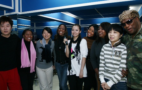 张靓颖与乐手合影