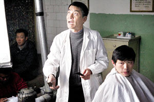 刘威因为角色造型需要,只在薄毛衣外罩了一件单薄的白色大褂,在屋子里冻得不停地活动手脚。