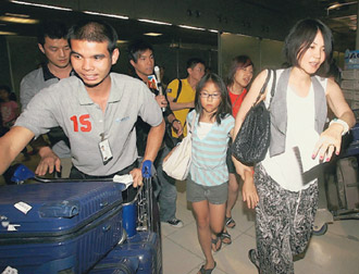 李亚鹏(左一)天天和王菲(右一)热线,中为童童。
