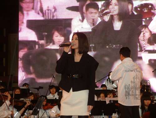中新网12月22日电 陈慧琳前晚到澳门出席回归庆祝活动,与五十位青少年组成的澳门青年交响乐团合作,演绎《熏衣草》。