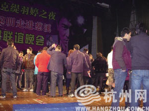 但观众已经不买账,高涨的情绪在此刻已经演变成一种被欺骗后的愤怒。慈溪人民大会堂值班工作人员傅先生本想去调解,可他发现场面已不是他能控制,便拨了110。