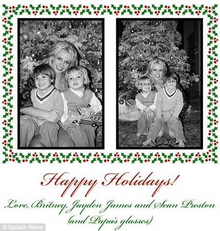 中新网12月25日电 英国《每日邮报》报道,“小甜甜”布兰妮携爱子Jayden James和Sean Preston入镜,拍摄圣诞贺卡。布兰妮最近东山再起,一改疯癫形象,有望全面重战娱乐圈。