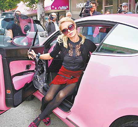 图文:希尔顿晒20万美元粉红车 全球仅此一辆