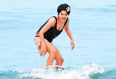 她痛得头昏眼花,但忍痛继续挑战,结果又翻落海中,浪板竟砸在她的左眼眼窝处,她昨形容:“因为太痛,当下都忘记头跟腰的痛。”她痛得受不了,决定走回岸边,不料又一脚踩上尖锐的石头及海胆的刺,当场割伤、流血,友人忙帮她搽药、包扎。