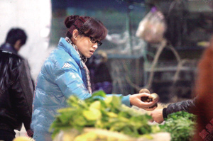 叶一茜戴上黑框眼镜,田亮提醒她天冷戴上围巾,然后,她便一个人下车走进了市场,田亮则将车停在了马路边上。可能怕被路人认出,等待爱妻买菜的时间里,田亮一直埋头玩手机、接电话,相当低调。