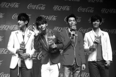作为目前最受欢迎的青春偶像组合,“飞轮海”4位帅哥成员吴尊、炎亚纶、汪东城和辰亦儒齐集上海,推出今年可口可乐全新广告。由于早有“飞轮海”成员不和的传闻,吴尊和“大哥”汪东城在发布会上更是“明争暗斗”,但记者一提到前辈F4,四人均立刻不屑道,“他们只是机遇比较好”。