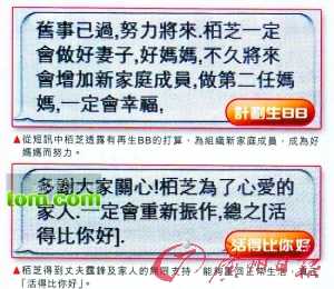 张柏芝在短信中暗示自己从来没有退出并有意重返娱乐圈工作,更表示“一定会一家幸福快乐”,甚至留言“旧事已过,努力将来,柏芝一定会做好妻子、好妈妈,不久将来会增加新家庭成员,一定会幸福”。