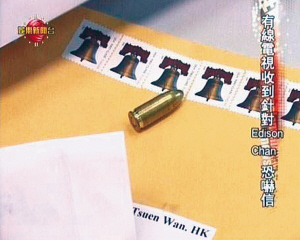 子弹恐吓信爆出后,在港引起震惊,警方也介入调查。昨天,陈冠希的老板林建岳接受记者采访时表示:“因为香港的法律和秩序很好,相信警察会尽快找出寄信人。”