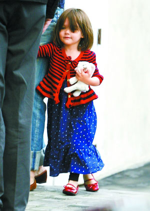 昨天,加州圣塔莫尼卡,阿汤嫂凯蒂带着女儿苏瑞和贝克汉姆的两位小公子一起到儿童艺术中心观看展览。据悉,凯蒂目前正在设计童装,进军时尚领域,灵感来自于她和阿汤哥的女儿苏瑞。凯蒂说她与朋友从一年前就开始一起工作,画草图买样衣。