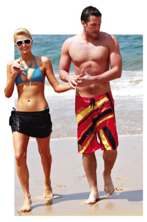 希尔顿的风流史全球闻名,身家30亿英镑,身边的男伴也频频更换。没有想到,28岁的“芭比娃娃”的真命天子就这样出现了:比她小5岁的美国职棒大联盟球员道格·雷恩哈特拜倒在她的石榴裙下。