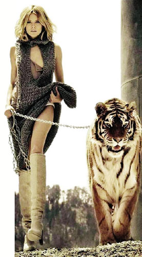 英国女星西耶娜·米勒为《DT》杂志拍摄了一组充满原始魅惑的照片,照片中的西耶娜与老虎同行,摆出各种撩人的姿势。据悉,从《卡萨诺瓦》到《密会》,西耶娜已逐渐摆脱花瓶形象,10月22日她将首次登上百老汇的舞台,演出剧目《After Miss Julie》。