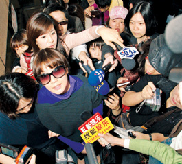 贾静雯昨天乘坐最早一班从台北桃园机场直航浦东的飞机于上午11点准时抵沪,大批上海、台湾的媒体早已在机场等候。随着旅客渐渐走出,却迟迟未见贾静雯的身影,一位空姐一语道破:“我刚才看到她往那边的VIP通道走了。”顿时引起媒体的紧张,怕贾静雯再度上演美国酒店和媒体“躲猫猫”的戏法。