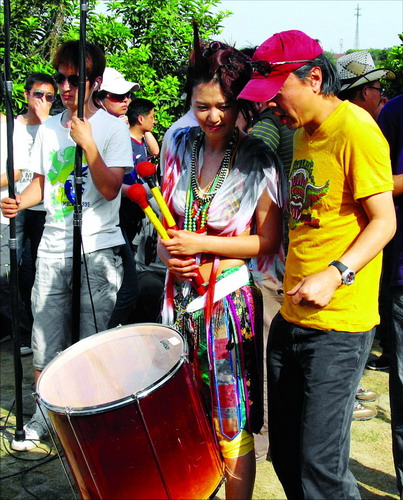 在剧照上,谭维维穿着清凉,再加上混合了各种民族元素的鲜艳装饰和纹身,火辣的身材暴露无疑。更加令人惊奇是谭维维的发型,一缕缕火箭般的冲天直发,颇有漫画卡通人物的感觉。而崔健打造出这般造型,是为了表现未来的风格,还是仅仅用于乐队的表演,尚不得而知。激烈的鼓乐、动感的舞蹈、火辣的装束、夸张的发型,崔健谭维维共同打造的这部发生在2029年的未来成都故事,最终将呈现出一番怎样的效果,让人非常期待。
