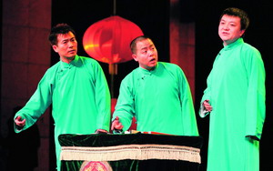 11月上旬,德云社十周年庆典中,上演了一场黄健翔相声处子秀,他与徐德亮、足球记者董路一起表演了《不说足球说相声》,历时20分钟,体育圈特别是中国足球圈中的不少陋习都被提及,像喝酒、泡吧、被砍都成了三人调侃的笑料。与此同时,黄健翔所在的央视也被无情嘲讽,一些在黄健翔眼中不算合格的主持人的话,更是被拿来套用。黄健翔甚至不惜“牺牲”自己,让董路拿着那一段经典“怒吼”及张靓颖来逗哏。