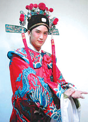 被唱戏行头折腾的还有“好男儿”巫迪文。记者见到他时,巫迪文涂了腮红、画了血红的嘴唇,正在神经高度紧张地走路,好几次跌跌撞撞地差点摔倒。眼前的巫迪文似乎一下子猛长了几十厘米,他撩起拖地的戏服,指着鞋向记者解释道:“我穿的是松高鞋,有10多厘米厚,加上头饰,简直成了超过2米的巨人,而且整个人失去重心,走路都很困难。”巫迪文说,他好几次都差点把脚给扭伤。