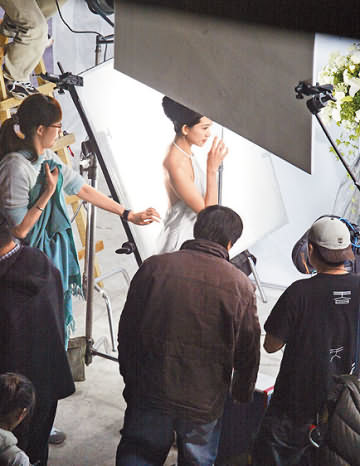 下午3时开拍的广告,她却躲在休息室取暖,由一位替身帮她彩排走位,直到晚间8时才步出休息室,一下镜头立刻有人帮她罩上披肩御寒,还有助理随侍在侧,帮她补妆、拿东西,厂商对她呵护备至。
