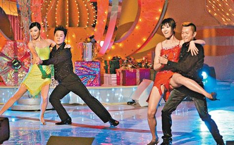(左起)陆诗韵拍蔡一杰,李亚男拍苏志威,大显舞技为筹款。