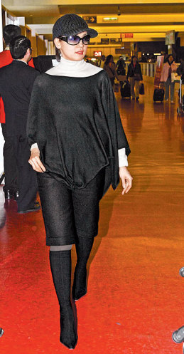 中新网1月9日电 睽违台湾近2年的璩美凤,昨傍晚回来了!在台湾桃园机场见记者她吓了一跳。日前传出她已怀孕,昨她脸挂大墨镜、头戴黑帽、身披黑色披肩,衣着宽松异常,有点孕味,也有遮掩肚子之嫌。是否真与老公Simon有爱的结晶?她不承认、不否认,仅笑着让记者摸肚子。