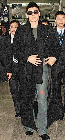 中新网1月11日电 韩国小天王Rain昨日到港,不少fans若看到偶像出席记者会的表现,一定失望又心痛!昨日Rain虽然首次乘坐其肖像飞机到港,准备明日开始一连三晚的个唱,但他出席记者会时,累得全程也难露出迷倒万千少女的可爱笑容,坚持全程戴黑色大墨镜示人。
