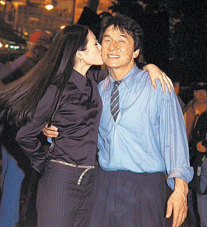 章子怡亲吻成龙。