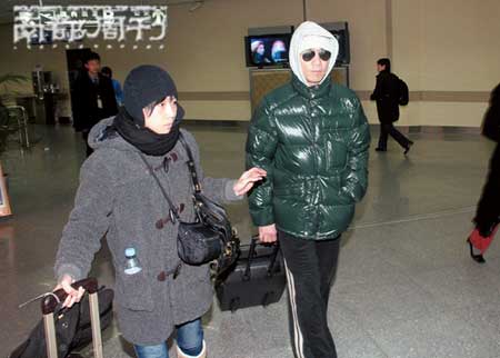 低调,从未见过如此低调,“天王”梁朝伟的双层连衣帽加上超大“墨镜”的组合,堪称无人能比,记忆中只能有“口罩超人”周星驰堪可比肩。这无疑给后脚走出机场的陈浩民一个机会,他的人气压倒了梁朝伟,不仅有歌迷要签名,甚至连老外都对他侧目而视。梁朝伟的行踪历来都是“谜”,从北京活动返回《色,戒》片场,梁朝伟选择了早班飞机,上午10:00就准时到虹桥机场。他穿着自己那套低调面包服和普通运动裤,用超级墨镜遮挡住自己的“电眼”,用两层连衣帽紧紧包住自己的头发——如果能再加上一领面纱,梁“天王”简直可以“滴水不漏”。除了记者,整个虹桥机场热闹的接机队伍,没有人注意到他。几分钟之后,陈浩民也走出来,他则可以自由地给影迷签名,甚至还能高兴地和身边看热闹的老外交换一个善意的眼神。